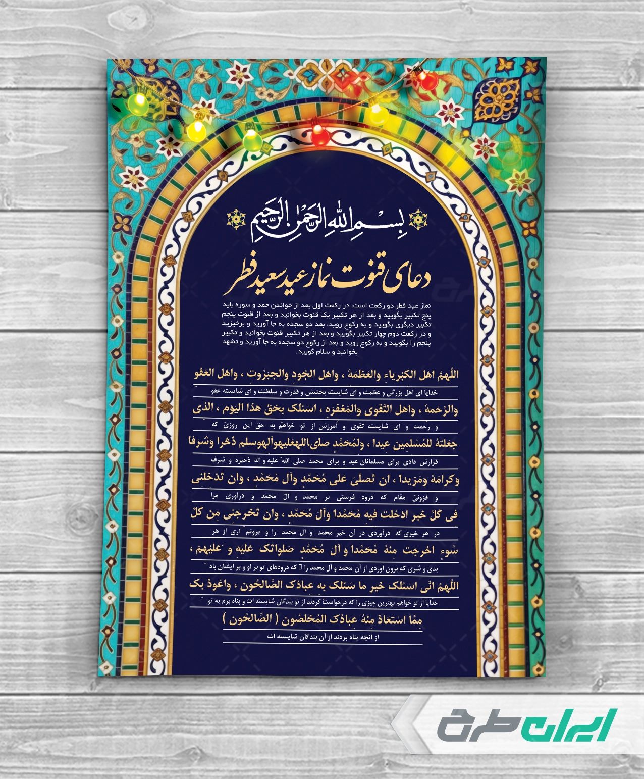 تدهیب و متن دعای قنوت نماز عید فطر می باشد که توسط تیم ایران طرح طراحی شده است.