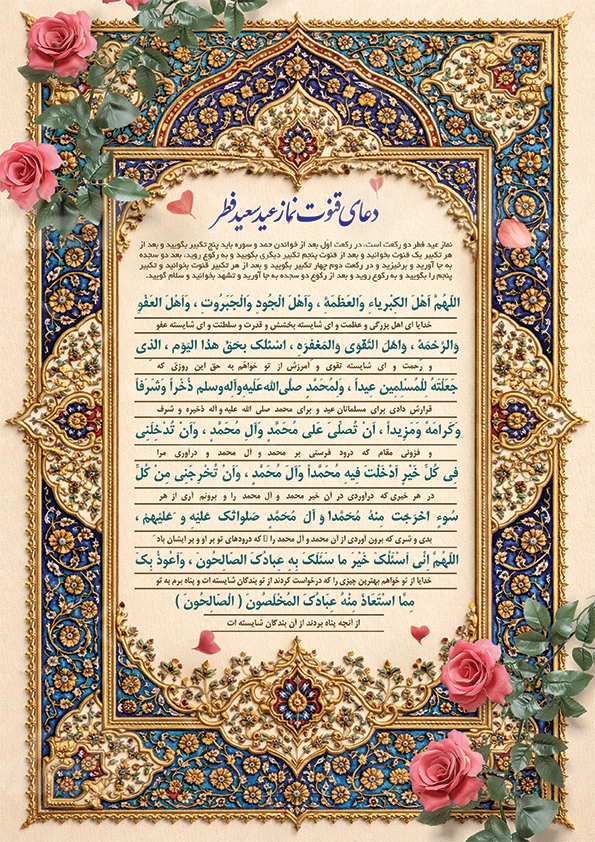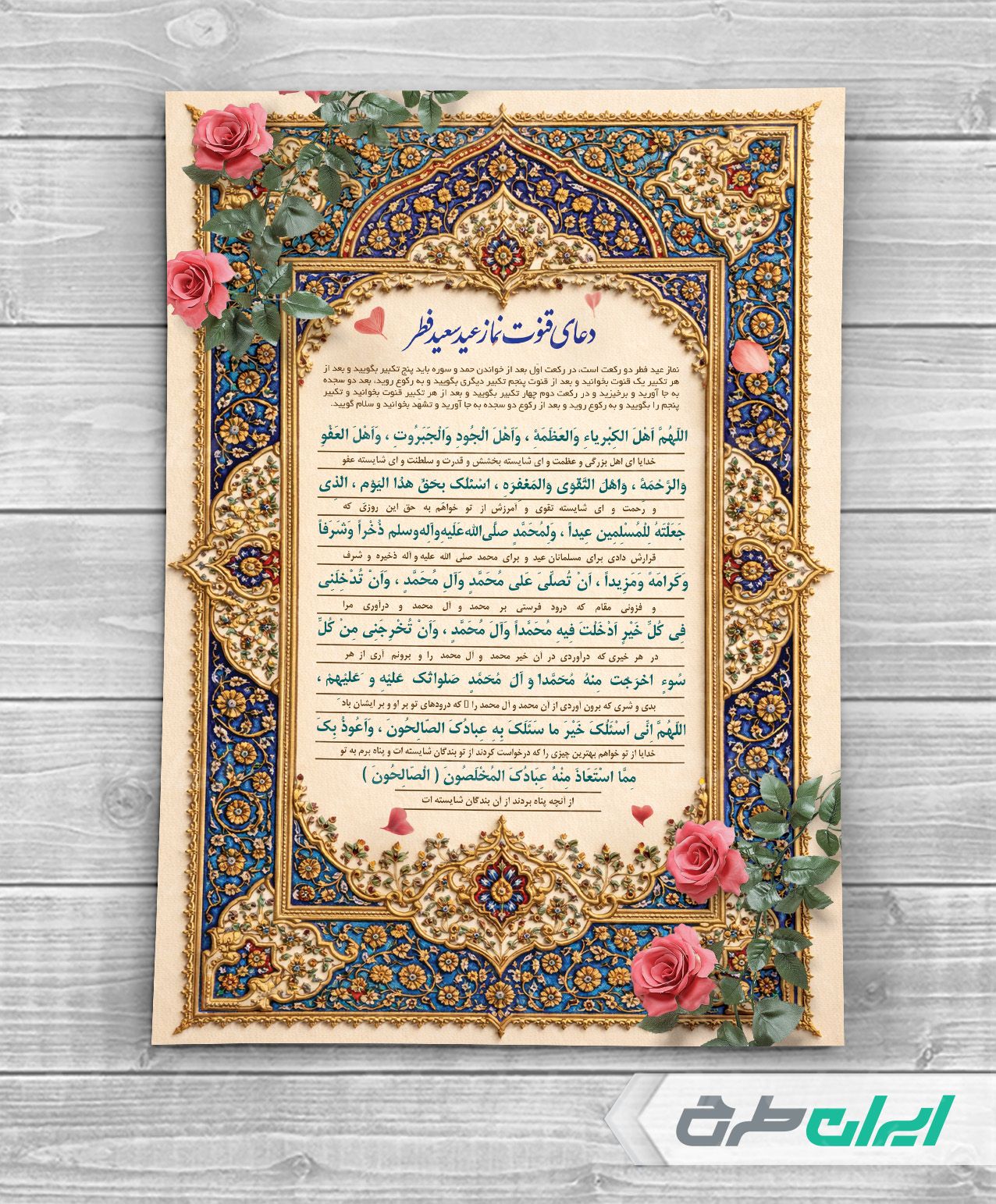 تدهیب و متن دعای قنوت نماز عید فطر می باشد که توسط تیم ایران طرح طراحی شده است.