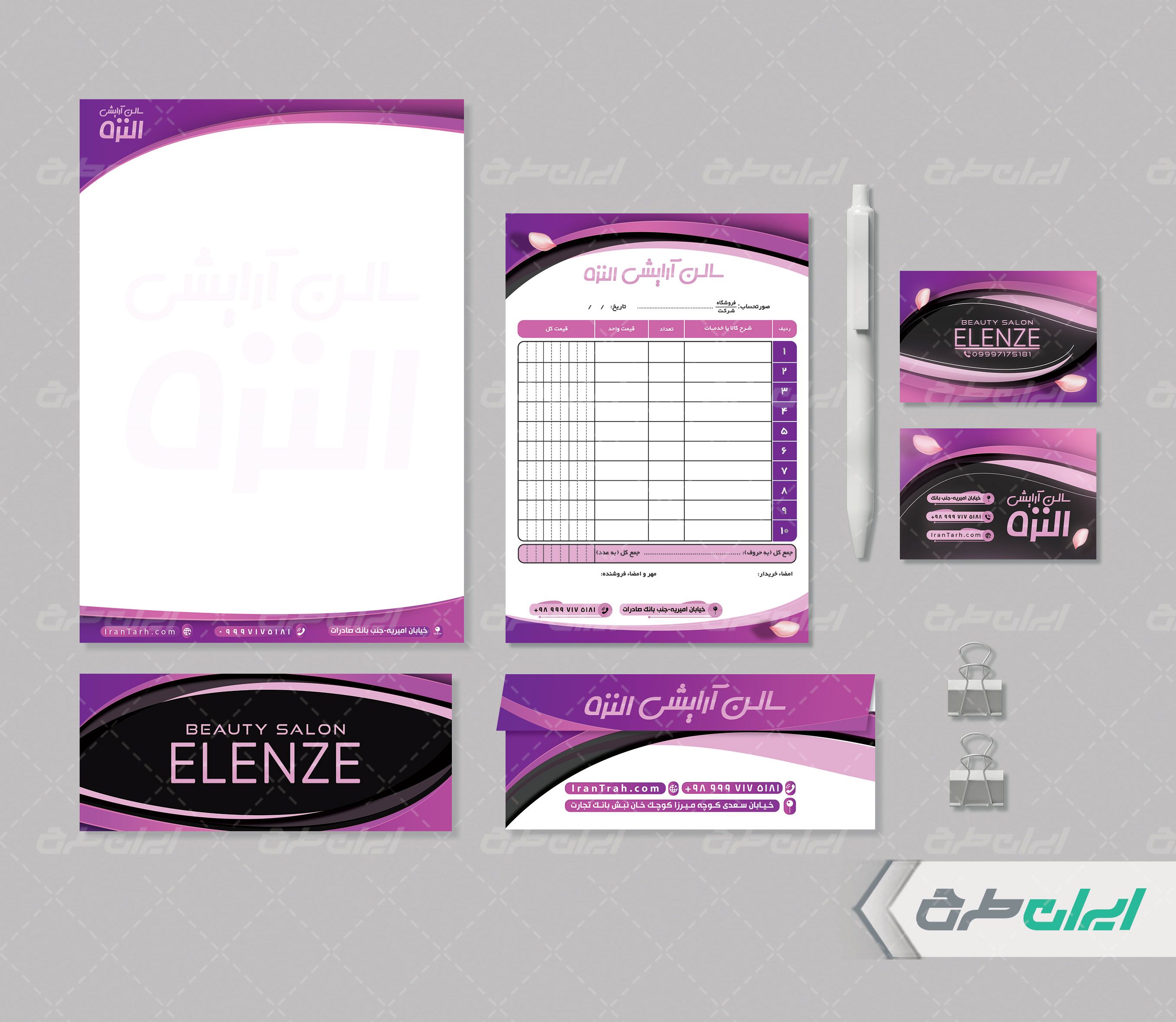 طرح ست اداری آرایشگاه زنانه جهت تبلیغات و بازاریابی این دسته از مشاغل توسط تیم ایران طرح طراحی شده است.