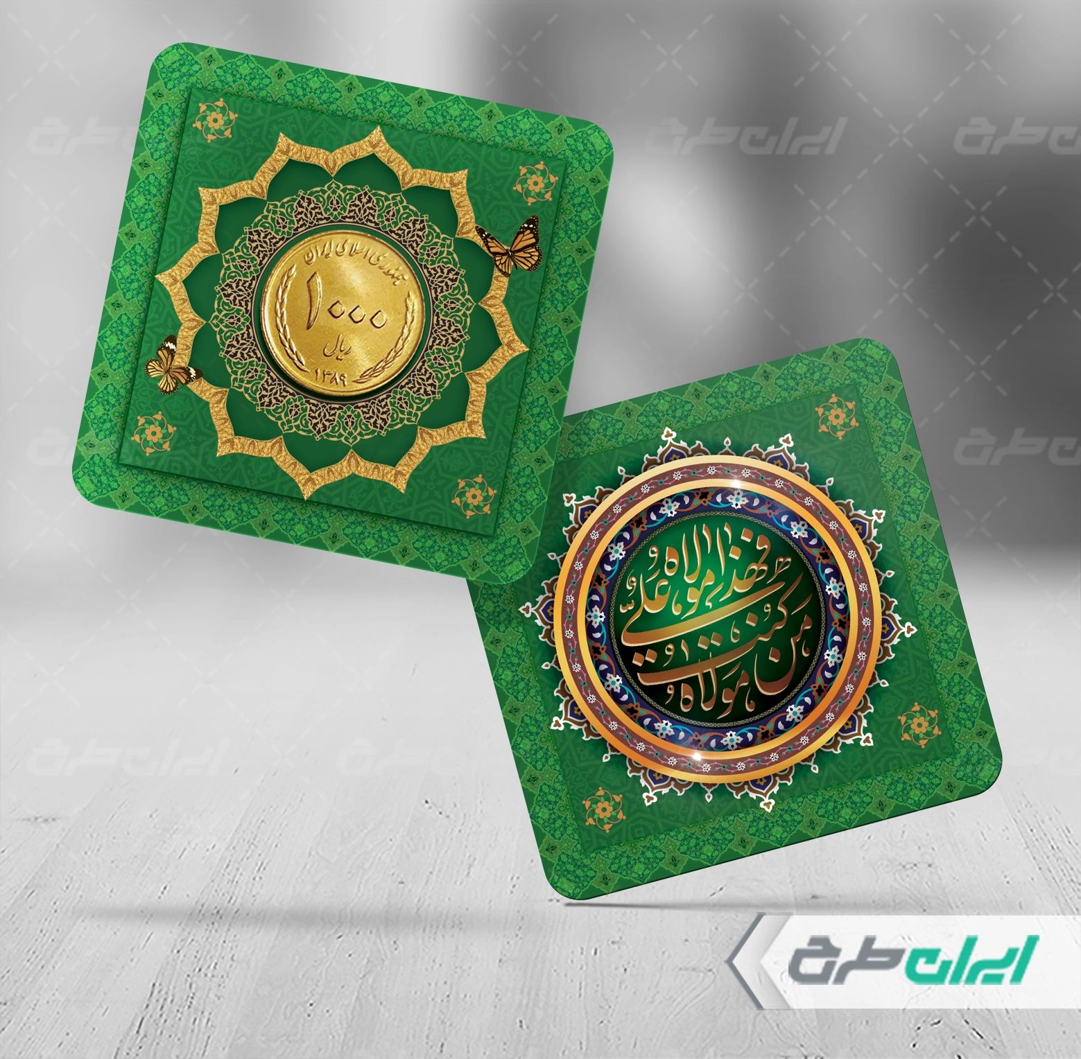 طرح سکه و متن تبریک عید غدیر خم می باشد که توسط طراحان ایران طرح در نرم افزار فتوشاپ طراحی شده است.