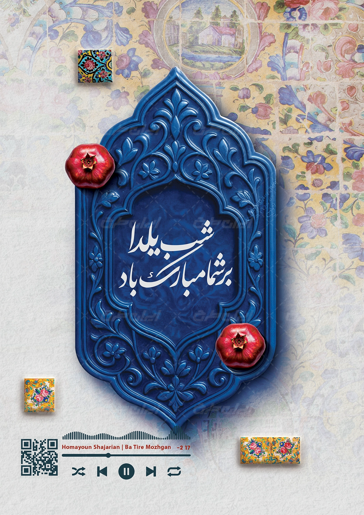 طرح لایهباز قاب موزیکال یلدایی یک فایل گرافیکی و چندرسانهای آماده است که با تم و المانهای ویژه شب یلدا طراحی شده است. این طرحها معمولاً شامل نمادهای سنتی یلدا مانند هندوانه، انار، شمع، گلها و نوشتههای تبریک شب یلدا هستند و قابلیت افزودن موسیقی و پیامهای شخصی را نیز دارند. ساختار لایهای طرح به کاربران اجازه میدهد هر بخش را بهصورت جداگانه ویرایش کنند و رنگها، متنها یا موسیقی را مطابق سلیقه خود تغییر دهند بدون اینکه کیفیت طرح کاهش یابد.