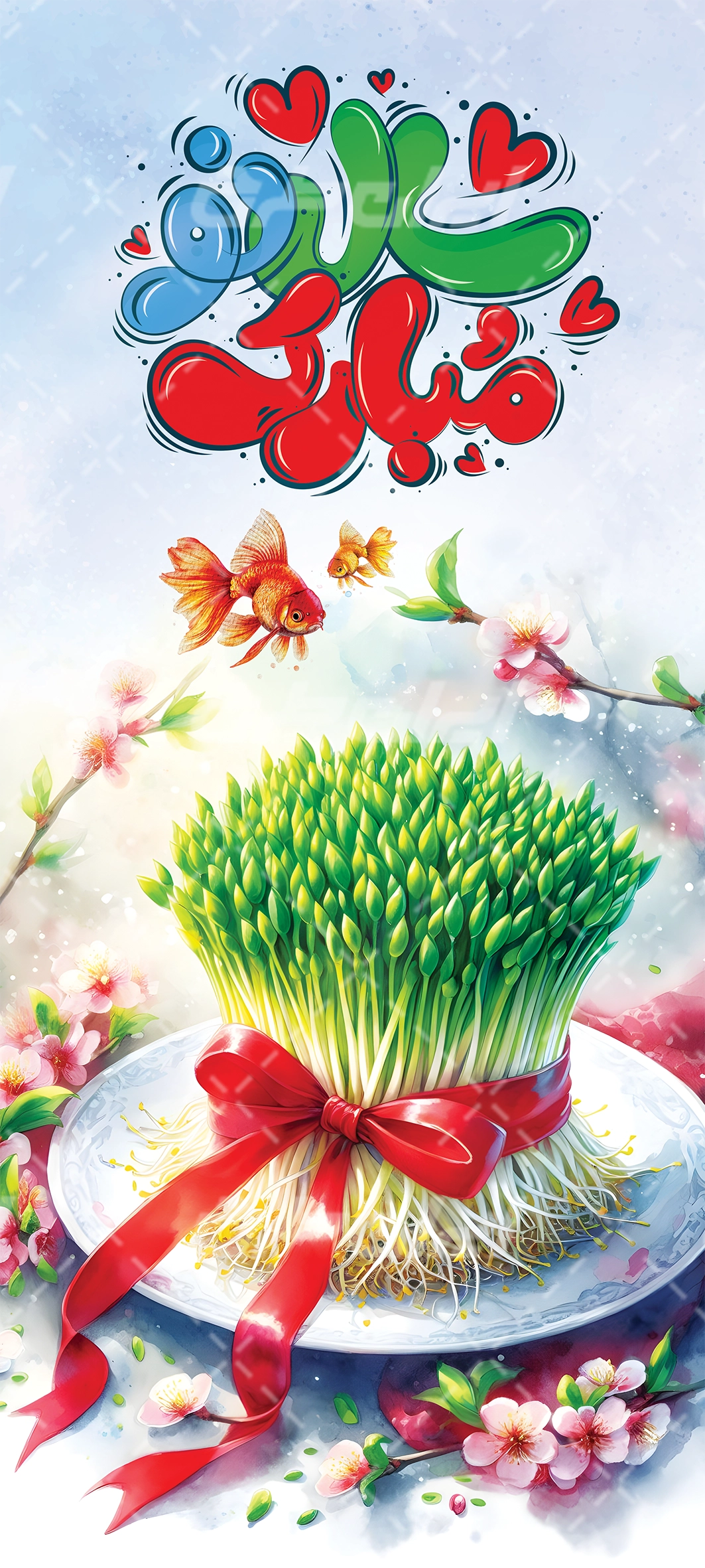 تصویر سبزه، تایپوگرافی سال نو مبارک و متن گرامیداشت عید نوروز می باشد که توسط تیم ایران طرح طراحی شده است.