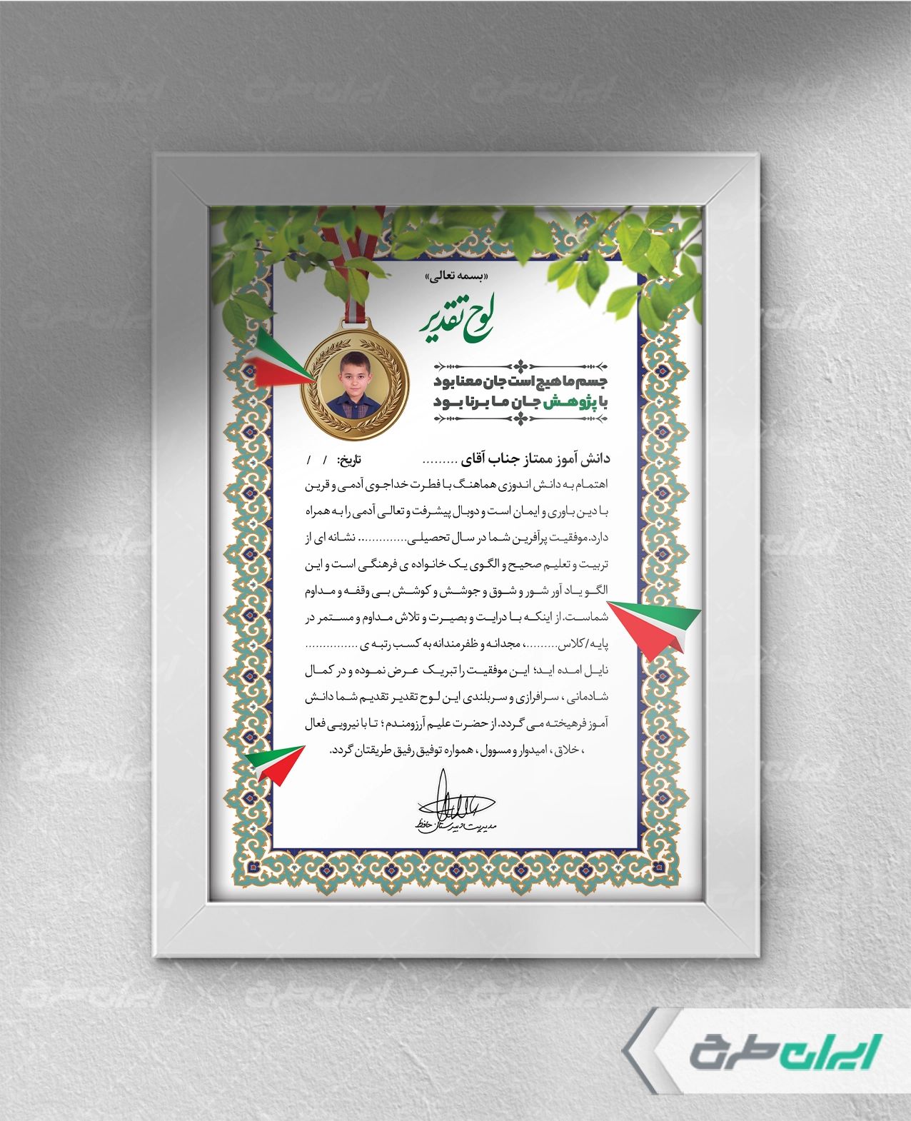 طرح لوح تقدیر روز دانش آموز، توسط تیم ایران طرح جهت استفاده اداره ها و سازمانها جهت تقدیر و تشکر از کارمندان طراحی و در دسترس کاربران سایت قرار گرفته است.