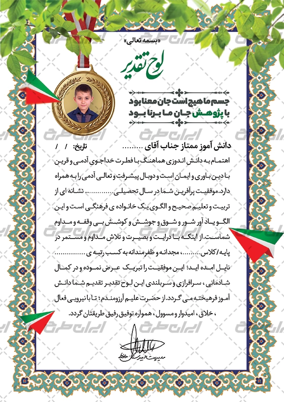 طرح لایه باز لوح تقدیر روز دانشآموز ابزاری مؤثر برای بزرگداشت و قدردانی از دانشآموزان به شمار میرود.