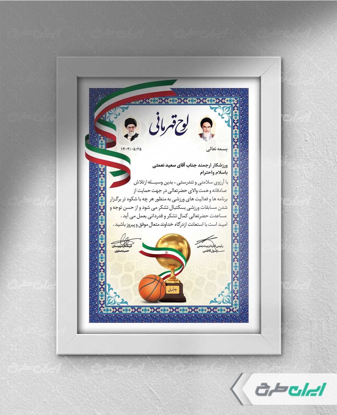 طرح لوح تقدیر قهرمانی، توسط تیم ایران طرح جهت تقدیر و تشکر از ورزشکاران طراحی و در دسترس کاربران سایت قرار گرفته است.