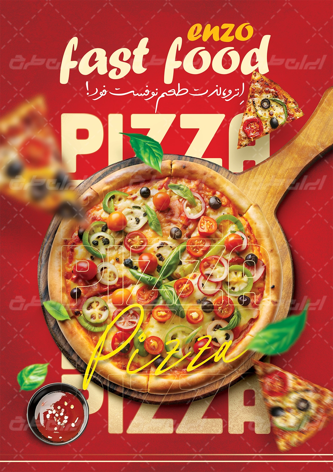 - استفاده مناسب از وکتور مرتبط با طرح فست فود در طرح منوی پیتزا فروشی