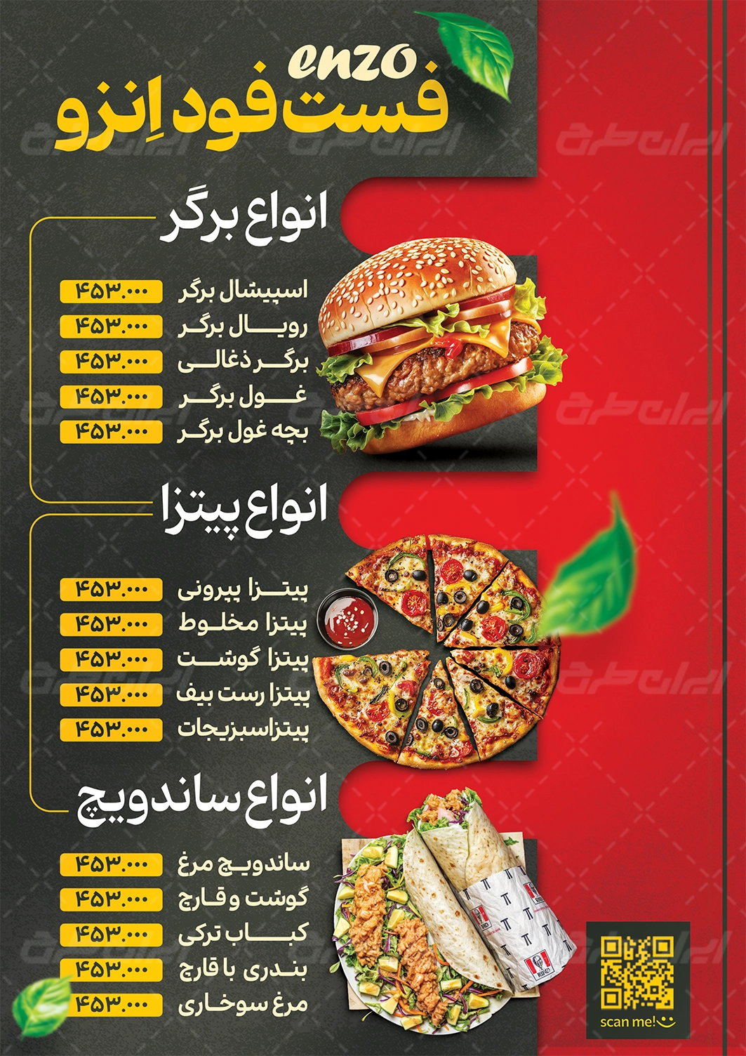 طرح منوی فست فود جهت استفاده این دسته از رستوران ها توسط طراحان ایران طرح طراحی، و در دسترس کاربران سایت قرار گرفته است.