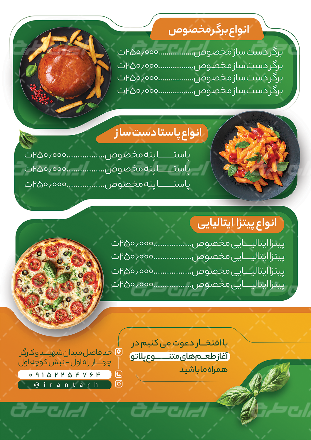 طرح منوی فست فود جهت استفاده این دسته از رستوران ها توسط طراحان ایران طرح طراحی، و در دسترس کاربران سایت قرار گرفته است.
