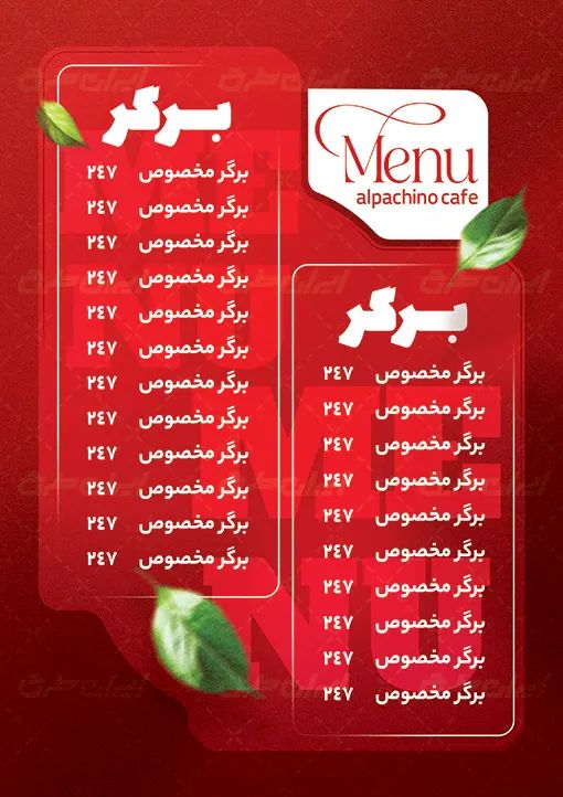 طرح منوی فست فود جهت استفاده این دسته از رستوران ها توسط طراحان ایران طرح طراحی، و در دسترس کاربران سایت قرار گرفته است.