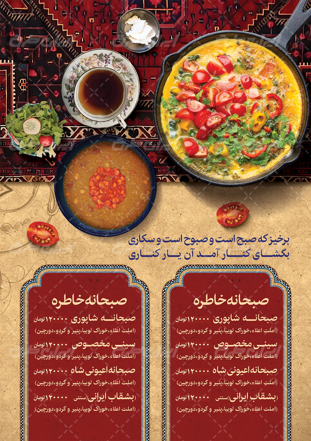 - طراحی شیک و کاربردی تراکت که مناسب شغل کافه صبحانه می باشد.