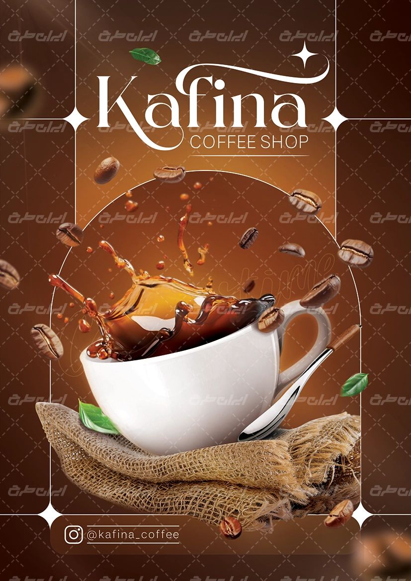 - استفاده مناسب از عکس با کیفیت دانه قهوه و فنجان که مناسب طرح منو کافه قهوه می باشد.