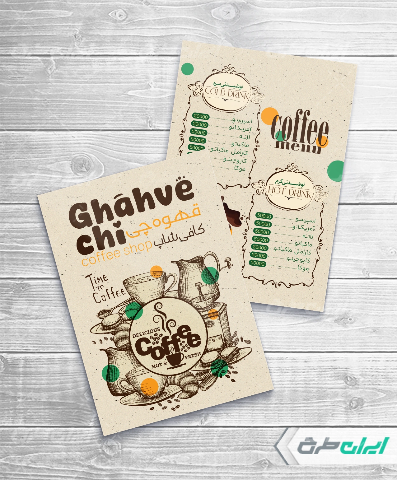 تیم ایران طرح طرح منو کافی شاپ را برای بازاریابی و تبلیغات گسترده تر طراحی و در دسترس کاربران سایت قرار داده است.