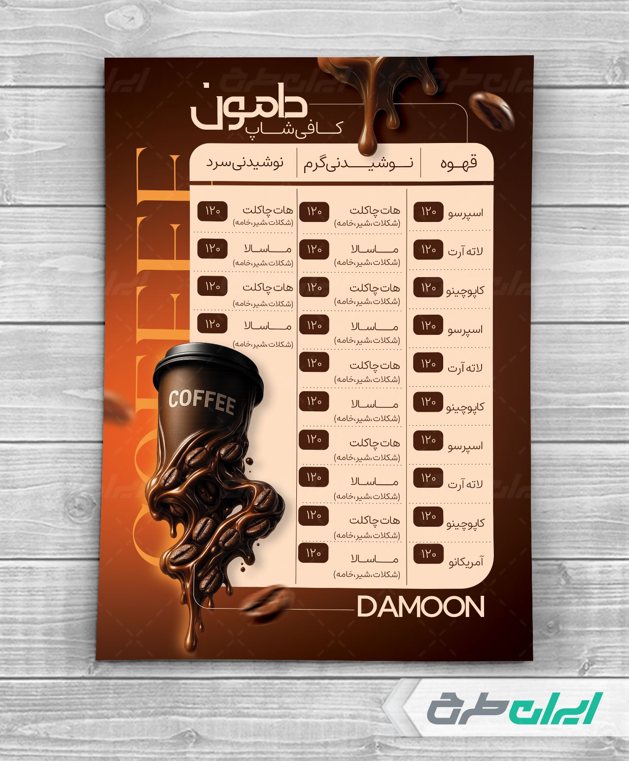 تیم ایران طرح طرح منو کافی شاپ را برای بازاریابی و تبلیغات گسترده تر طراحی و در دسترس کاربران سایت قرار داده است.