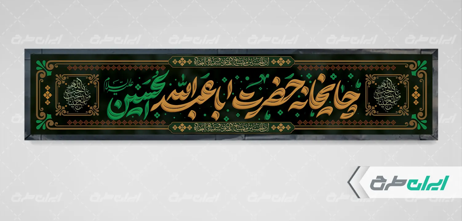 تایپوگرافی چایخانه حضرت اباعبدالله الحسین، کادر مذهبی، کادر اسلیمی، حاشیه تذهیب، محراب، تذهیب و نقوش مذهبی در زمینه بنر می باشد که توسط طراحان ایران طرح در نرم افزار فتوشاپ طراحی شده است.