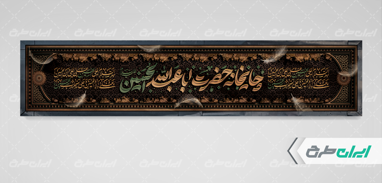 تایپوگرافی چایخانه حضرت اباعبدالله الحسین، کادر مذهبی، کادر اسلیمی، حاشیه تذهیب، محراب، تذهیب و نقوش مذهبی در زمینه بنر می باشد که توسط طراحان ایران طرح در نرم افزار فتوشاپ طراحی شده است.