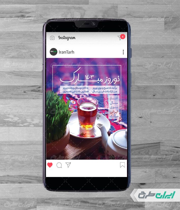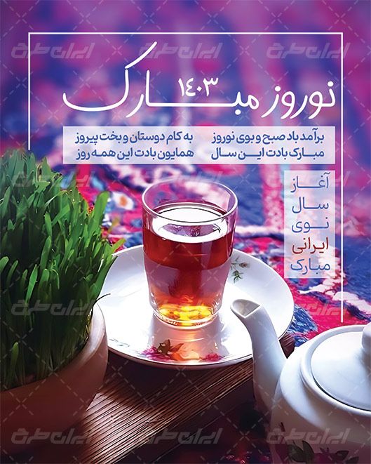 طرح پست اینستاگرام لایه باز عید نوروز شامل :تصویر چای و فنجان چای می باشد که توسط طراحان ایران طرح در نرم افزار فتوشاپ طراحی شده است. به دلیل لایه باز (قابل ویرایش توسط کاربران در نرم افزار فتوشاپ Adobe Photoshop) بودن و کیفیت بالای عناصر و المان های استفاده شده در طرح، می توانید علاوه بر استوری اینستاگرام، تصویر پروفایل، استوری اینستاگرام و سایر پلت فرم های فضای مجازی استفاده نمایید.