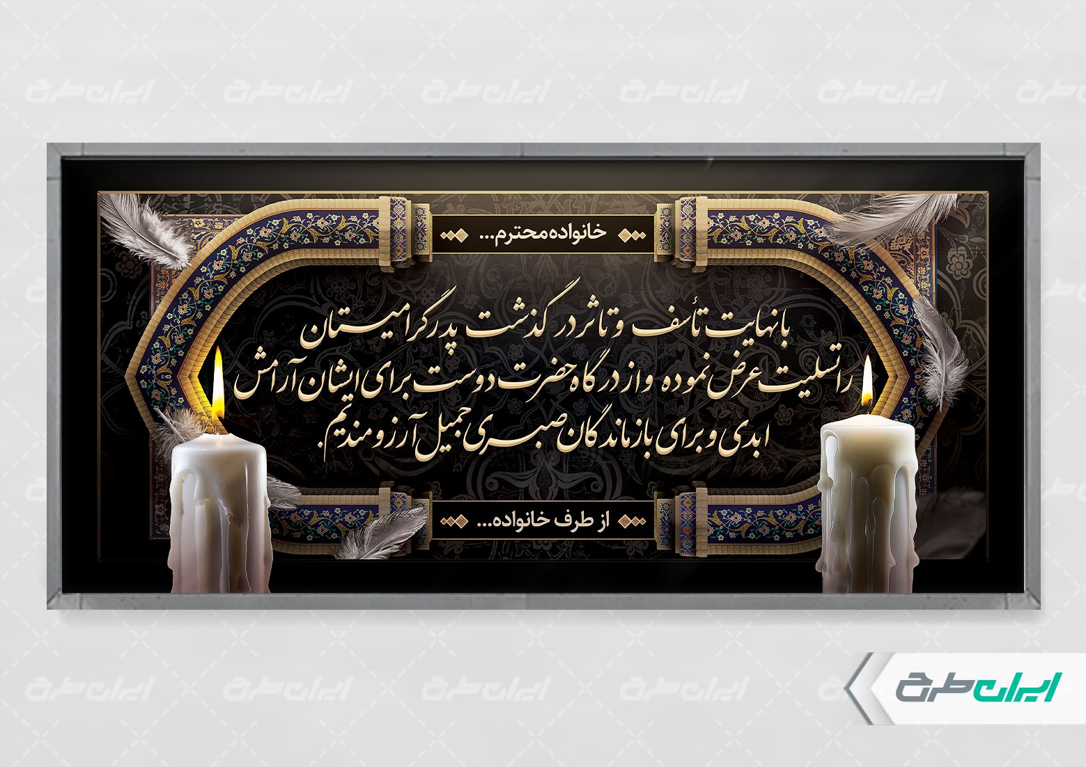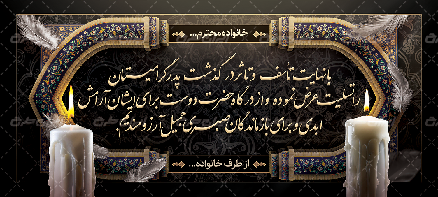 طرح بنر تسلیت ، توسط تیم حرفه ای ایران طرح جهت استفاده کاربران سایت طراحی و به صورت لایه باز در دسترس کاربران قرار گرفته است.
