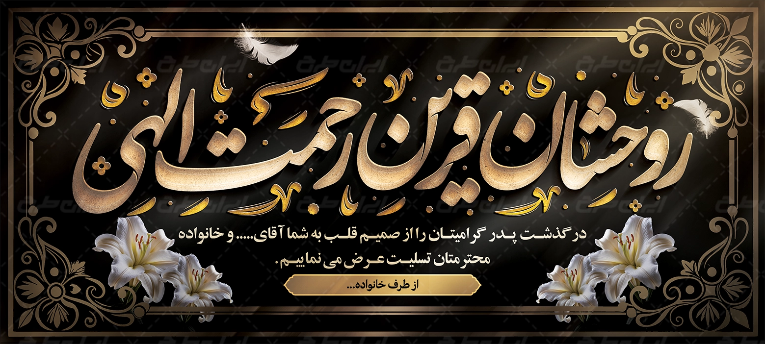 بنر تسلیت , بنر لایه باز تسلیت , طرح لایه باز بنر تسلیت , ترحیم , متن بنر تسلیت , طرح بنر تسلیت , متن تسلیت , طرح بنر ترحیم , متن ترحیم , تایپوگرافی روحشان قرین رحمت الهی , تسلیت , طرح , تذهیب , دانلود بنر تسلیت , بنر ترحیم , بنر تسلیت لایه باز , طرح بنر تسلیت ,