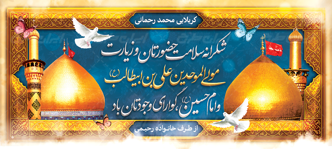 - استفاده مناسب از تذهیب و تصویر حرم در طراحی بنر خیر مقدم کربلا