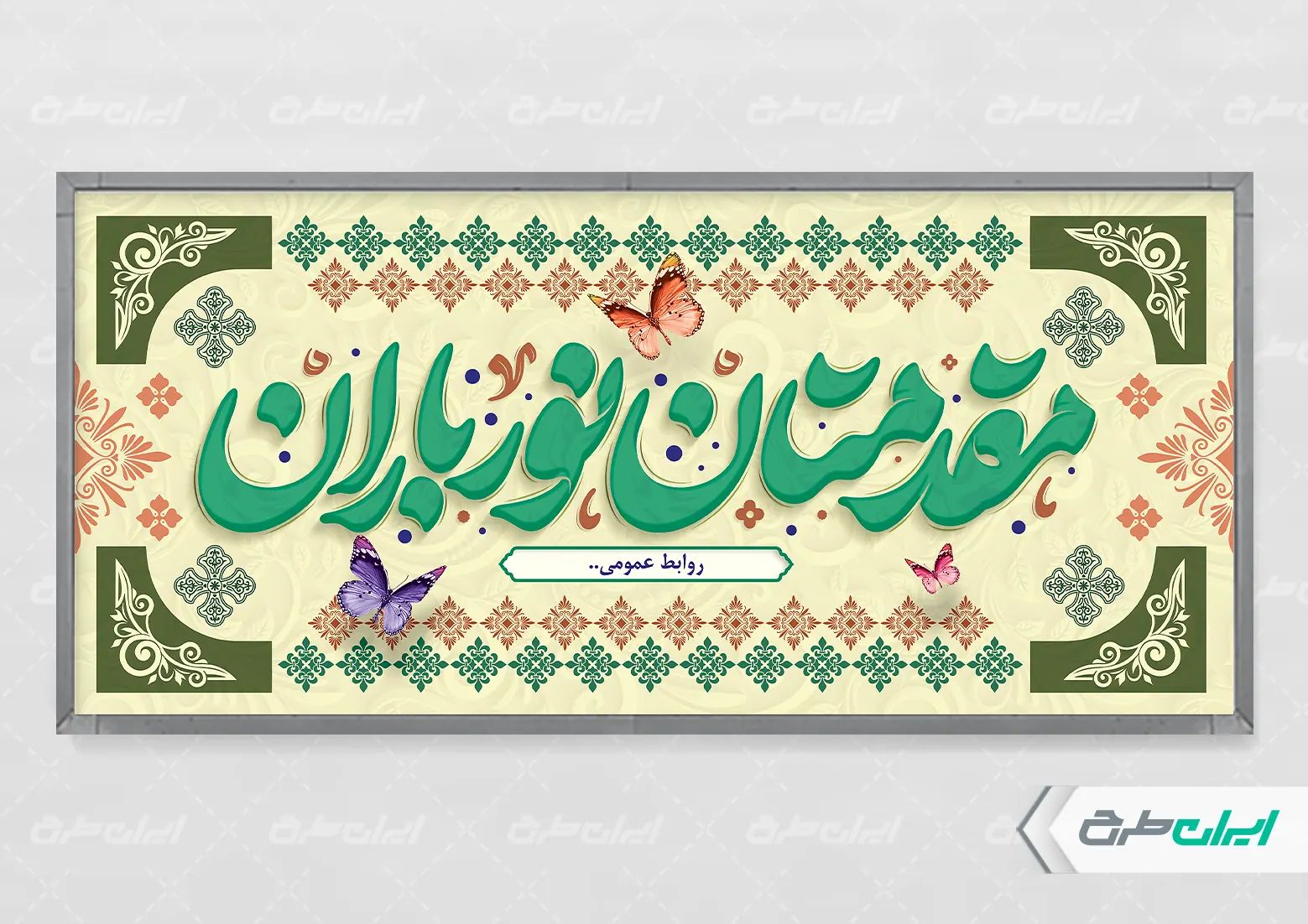 تصویر گل، نقوش اسلیمی، نقوش مذهبی، تذهیب و متن مرتبط با بنر خوش آمد گویی می باشد که توسط تیم ایران طرح طراحی شده است.