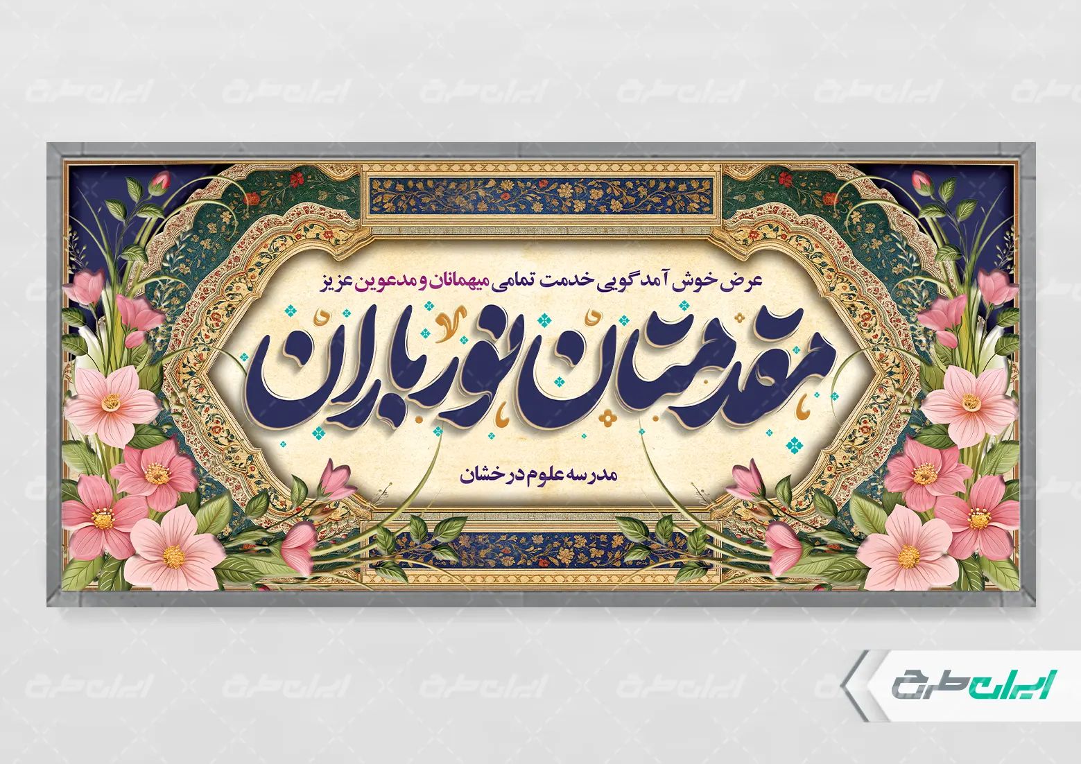 طرح لایه باز بنر خیر مقدم ، توسط تیم حرفه ای ایران طرح جهت استفاده کاربران سایت طراحی و به صورت لایه باز در دسترس کاربران قرار گرفته است.