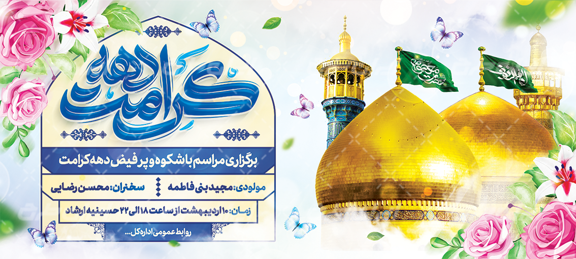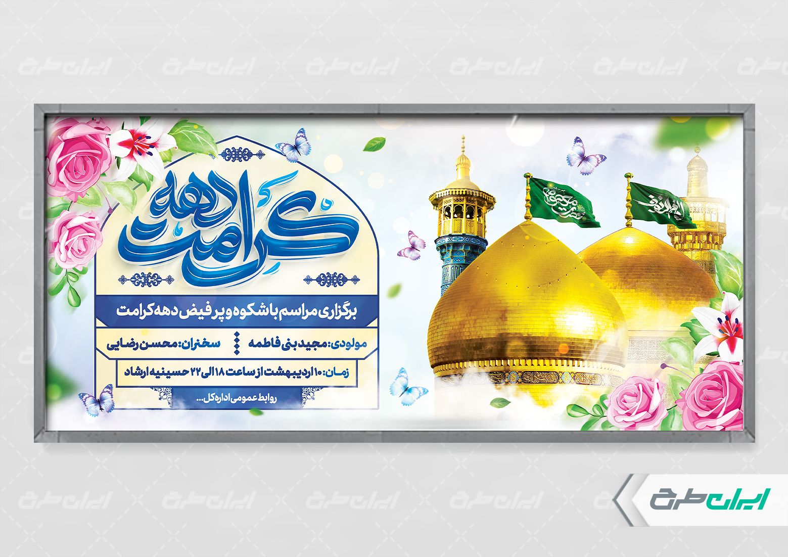 بنر دهه کرامت، توسط تیم حرفه ای ایران طرح جهت استفاده کاربران سایت طراحی و به صورت لایه باز در دسترس کاربران قرار گرفته است.