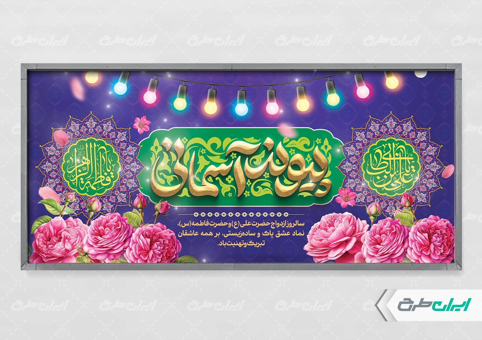 - هم نشینی مناسب رنگ بنفش با طرح بنر روز ازدواج