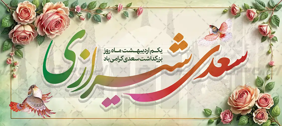 بنر روز بزرگداشت سعدی، توسط تیم حرفه ای ایران طرح جهت استفاده کاربران سایت طراحی و به صورت لایه باز در دسترس کاربران قرار گرفته است.