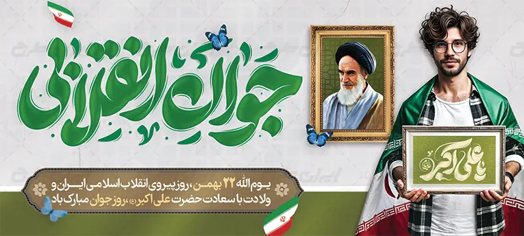 - طراحی بنر با استفاده از تایپوگرافی جوان انقلابی