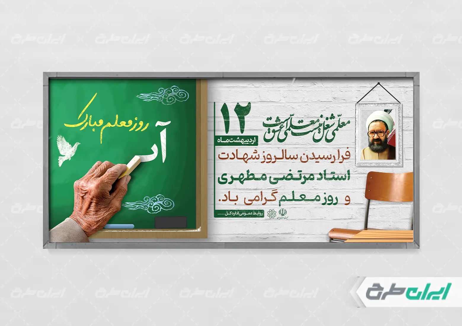 تصویر شهید مطهری و متن گرامیداشت روز معلم می باشد که توسط تیم ایران طرح طراحی شده است.