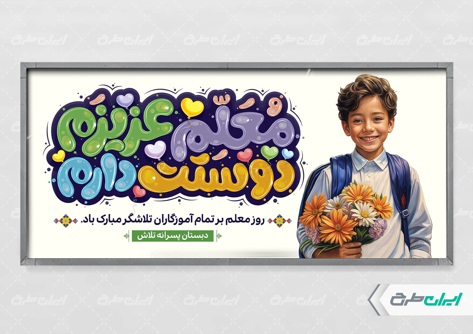 بنر روز معلم، توسط تیم حرفه ای ایران طرح جهت استفاده کاربران سایت طراحی و به صورت لایه باز در دسترس کاربران قرار گرفته است.