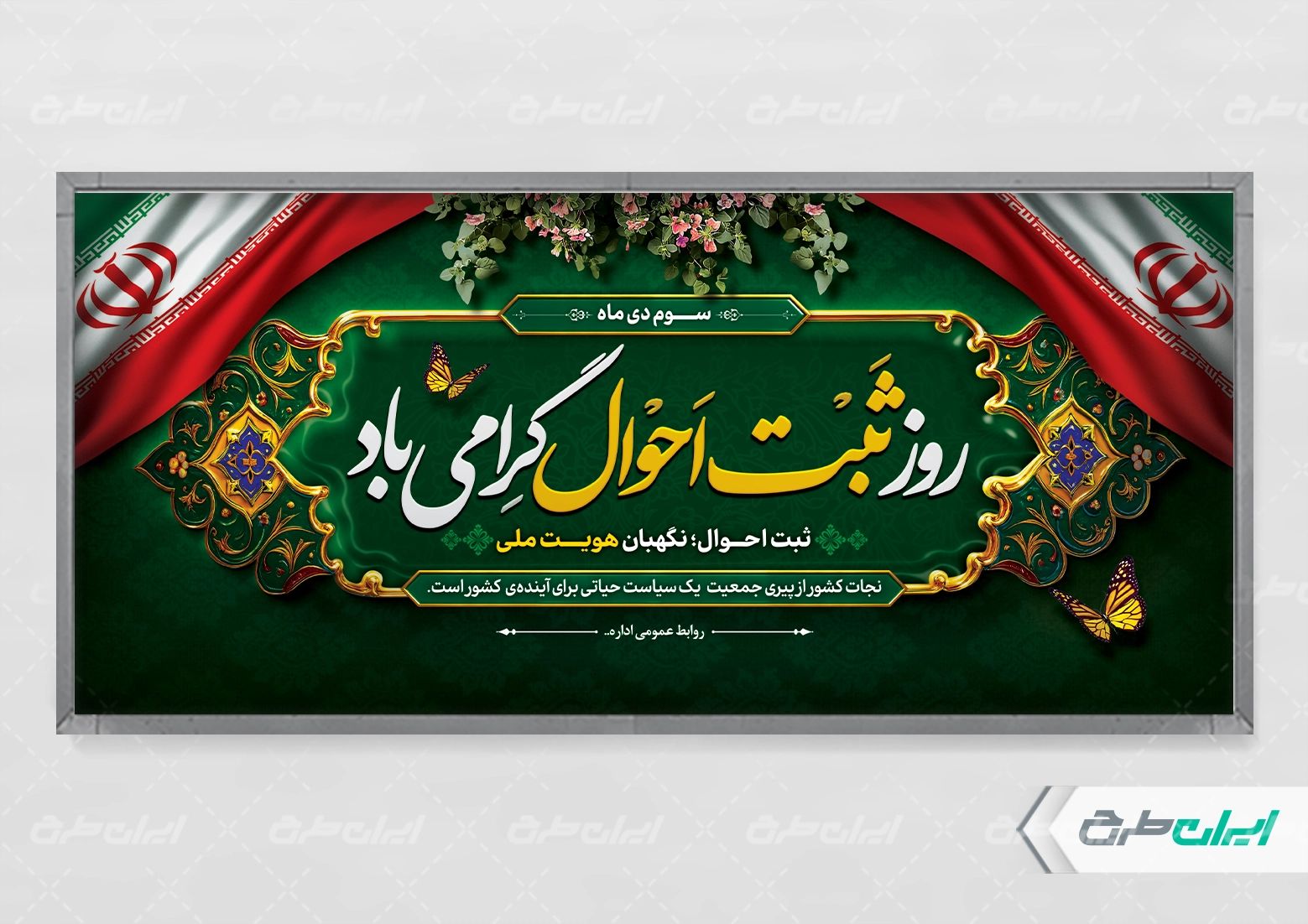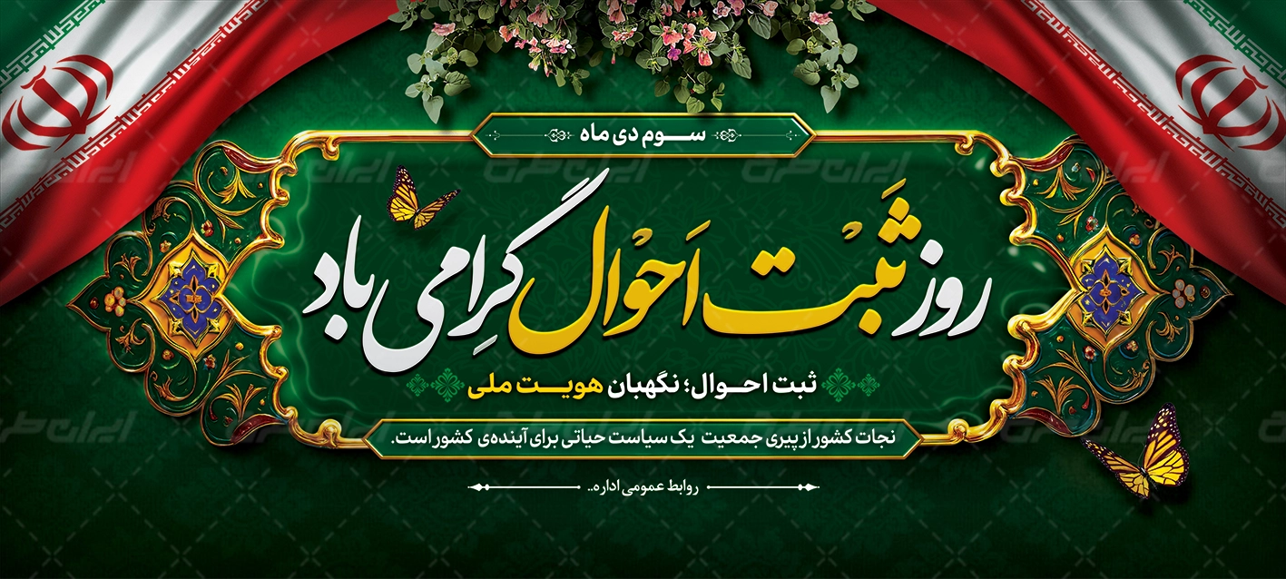 بنر روز ملی ثبت احوال جهت استفاده کاربران ایران طرح طراحی، و در دسترس کاربران سایت قرار گرفته است.