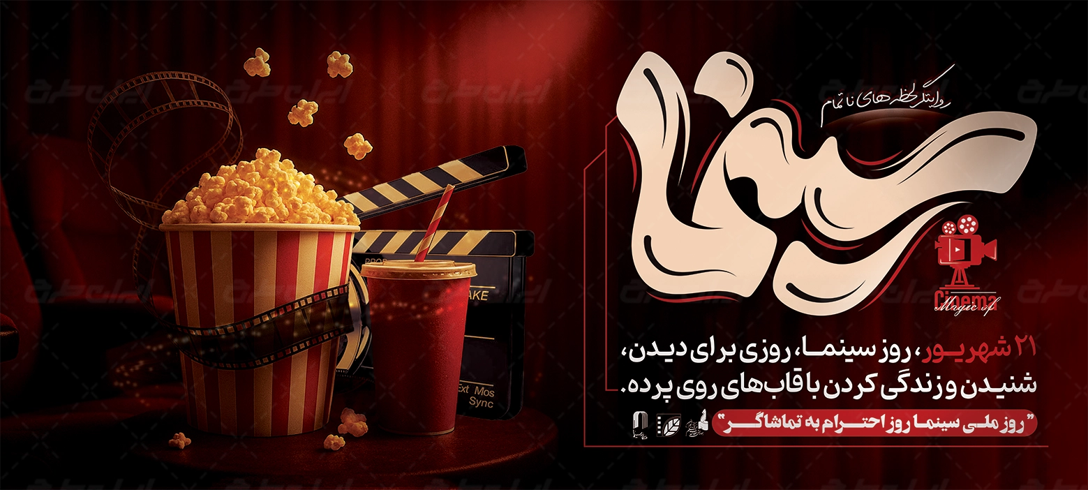 تصاویر مرتبط با بنر، متن تبریک روز ملی سینما می باشد که توسط تیم ایران طرح طراحی شده است.