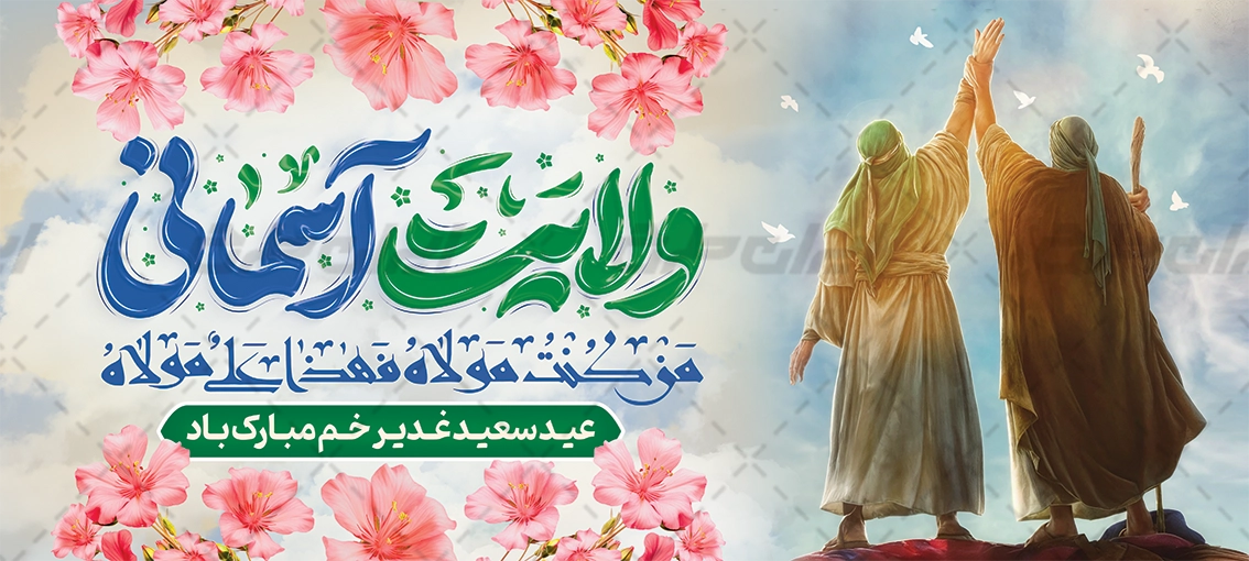 - طراحی بنر با استفاده از تایپوگرافی ولایت آسمانی در طرح بنر عید غدیر خم