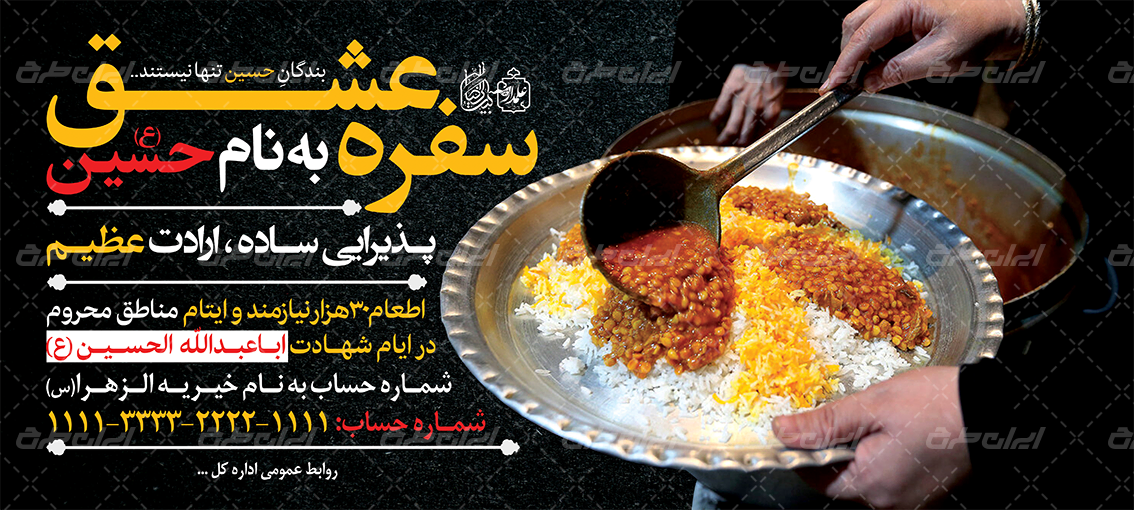 تصویر نذری و متن تسلیت ایام محرم می باشد که توسط طراحان ایران طرح در نرم افزار فتوشاپ طراحی شده است.