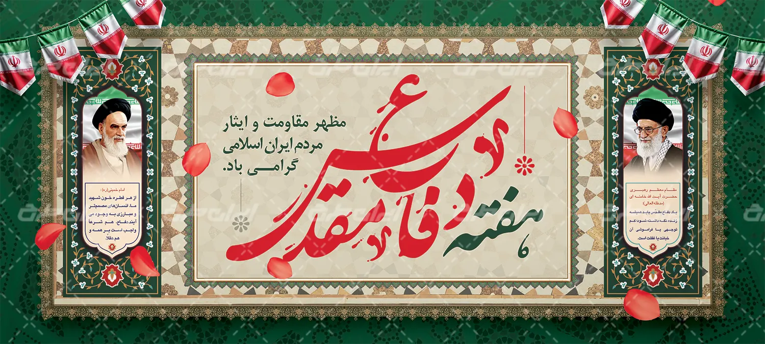 بنر لایه باز هفته دفاع مقدس، توسط تیم حرفه ای ایران طرح جهت استفاده کاربران سایت طراحی و به صورت لایه باز در دسترس کاربران قرار گرفته است.