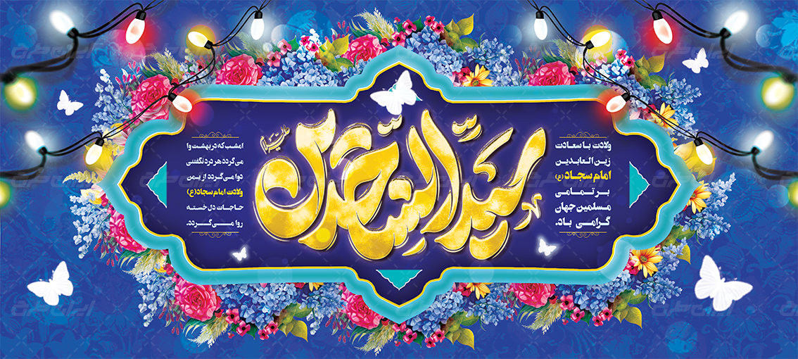 عید شعبانیه , بنر شعبانیه , بنر مناسبتی , ولادت امام سجاد (ع) , بنر ولادت , بنر ولادت امام سجاد (ع) , طرح بنر ولادت امام سجاد (ع) , تایپوگرافی سید السجادین , تذهیب , اعیاد شعبانیه , شعبانیه , بنر اعیاد شعبانیه , طرح لایه باز بنر ولادت امام سجاد (ع) ,