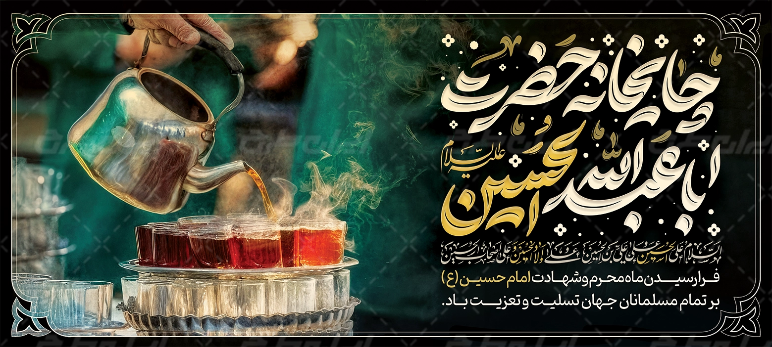 - طراحی بنر با استفاده از تایپوگرافی چایخانه حضرت اباعبدالله الحسین در طرح بنر محرم