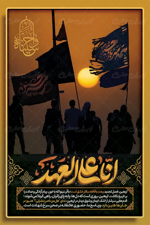تایپوگرافی انا علی العهد و متن تسلیت اربعین حسینی می باشد که توسط طراحان ایران طرح در نرم افزار فتوشاپ طراحی شده است.