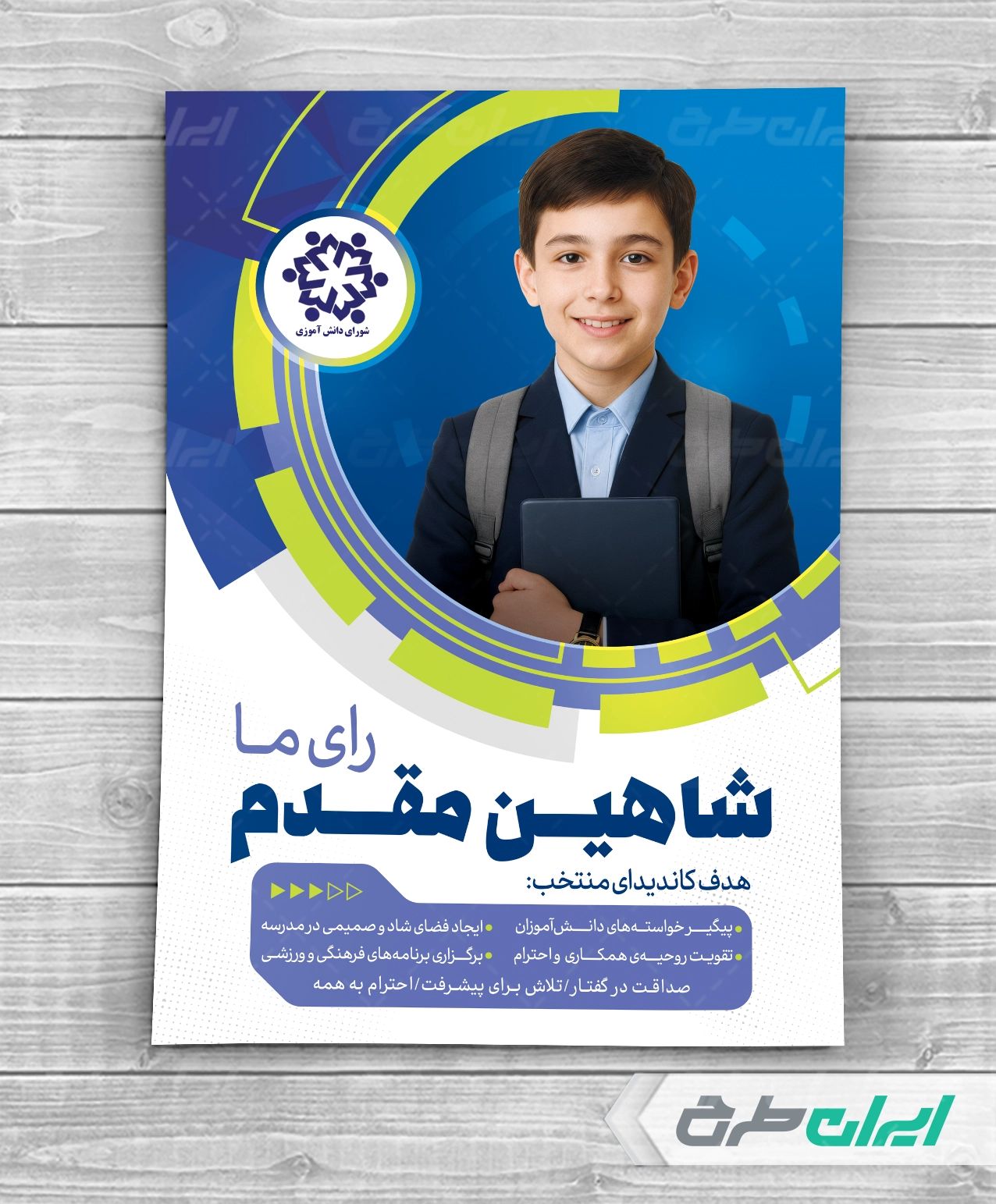 - استفاده از آیکون تصویر کاندیدای شورای دانش آموزی در طراحی پوستر