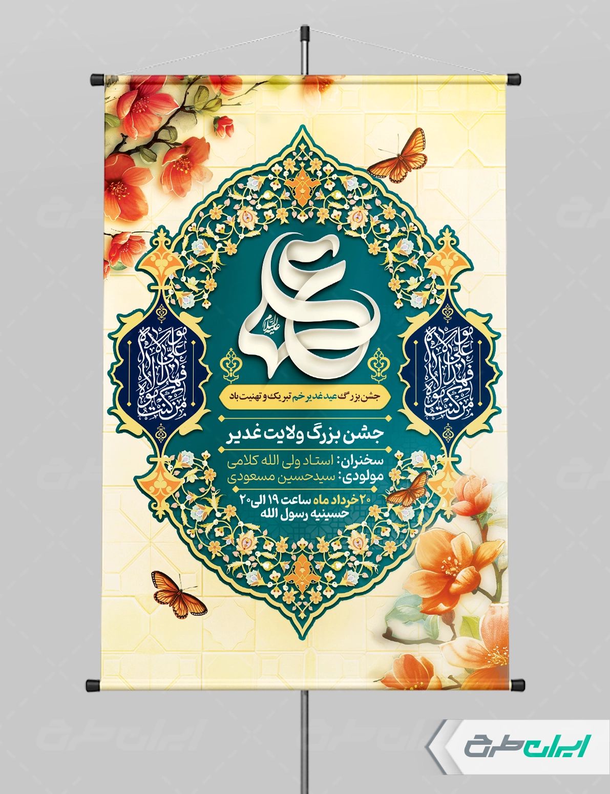 ضمنا به دلیل لایه باز بود طرح بنر عید غدیر می توانید با استفاده از نرم افزار فتوشاپ تغییرات دلخواه خود را اعمال کنید.