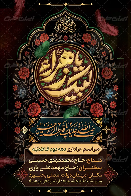 طرح بنر سالگرد شهادت حضرت فاطمه زهرا شامل: