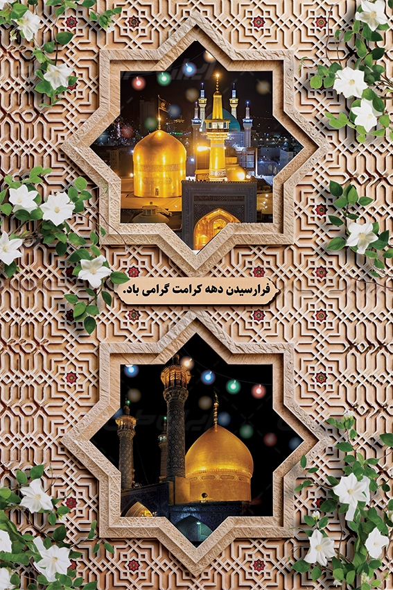 تصویر حرم و تذهیب و متن گرامیداشت دهه کرامت می باشد که توسط تیم ایران طرح طراحی شده است.