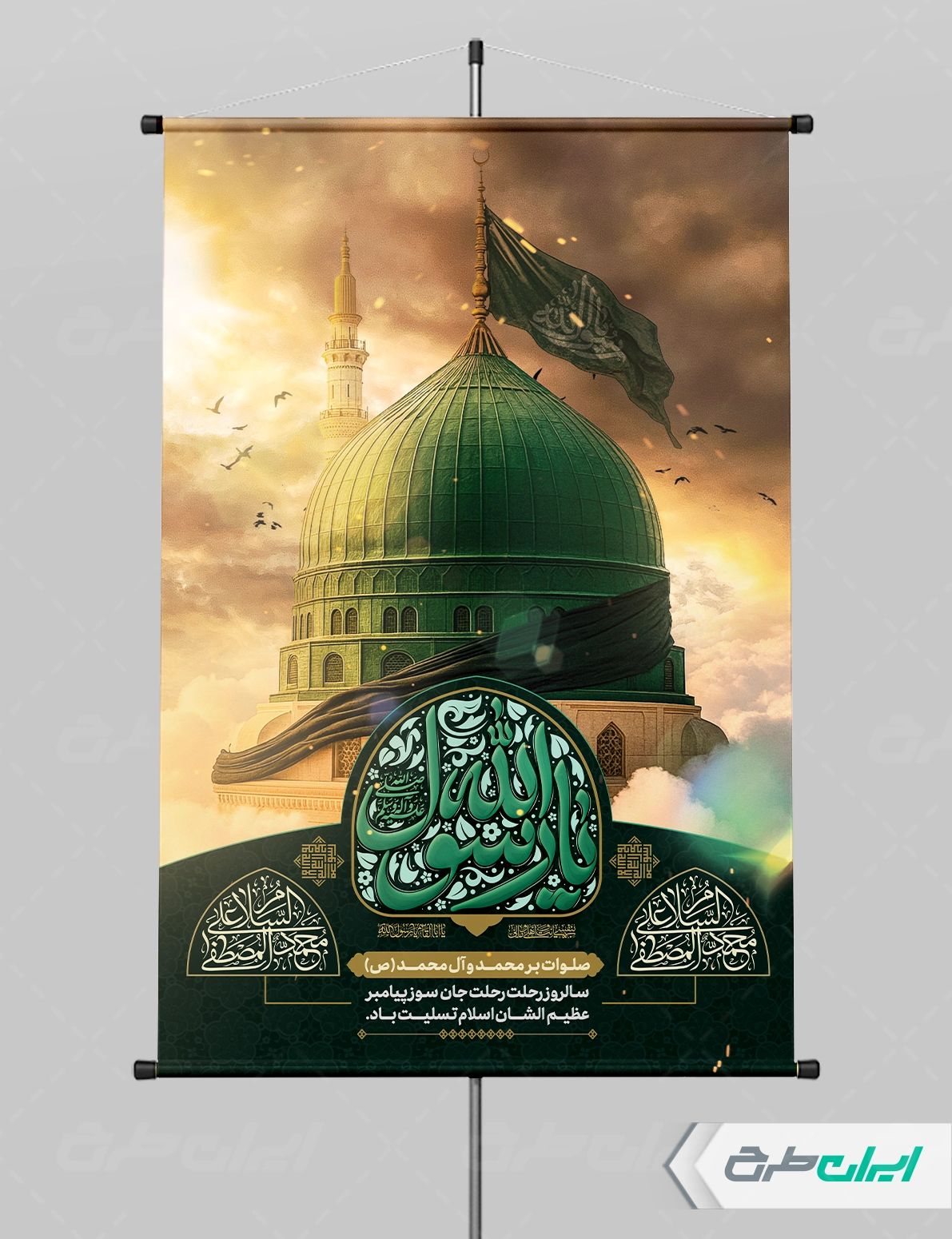 طرح بنر رحلت پیامبر اکرم، توسط تیم با تجربه ایران طرح جهت استفاده کاربران سایت طراحی و به صورت لایه باز در دسترس کاربران قرار گرفته است.