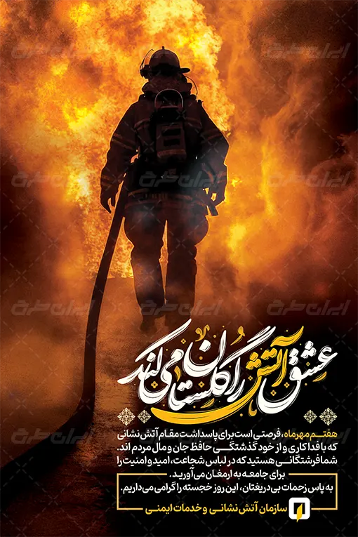عکس باکیفیت آتش نشان و متن تبریک روز آتش نشانی می باشد که توسط تیم ایران طرح طراحی شده است.