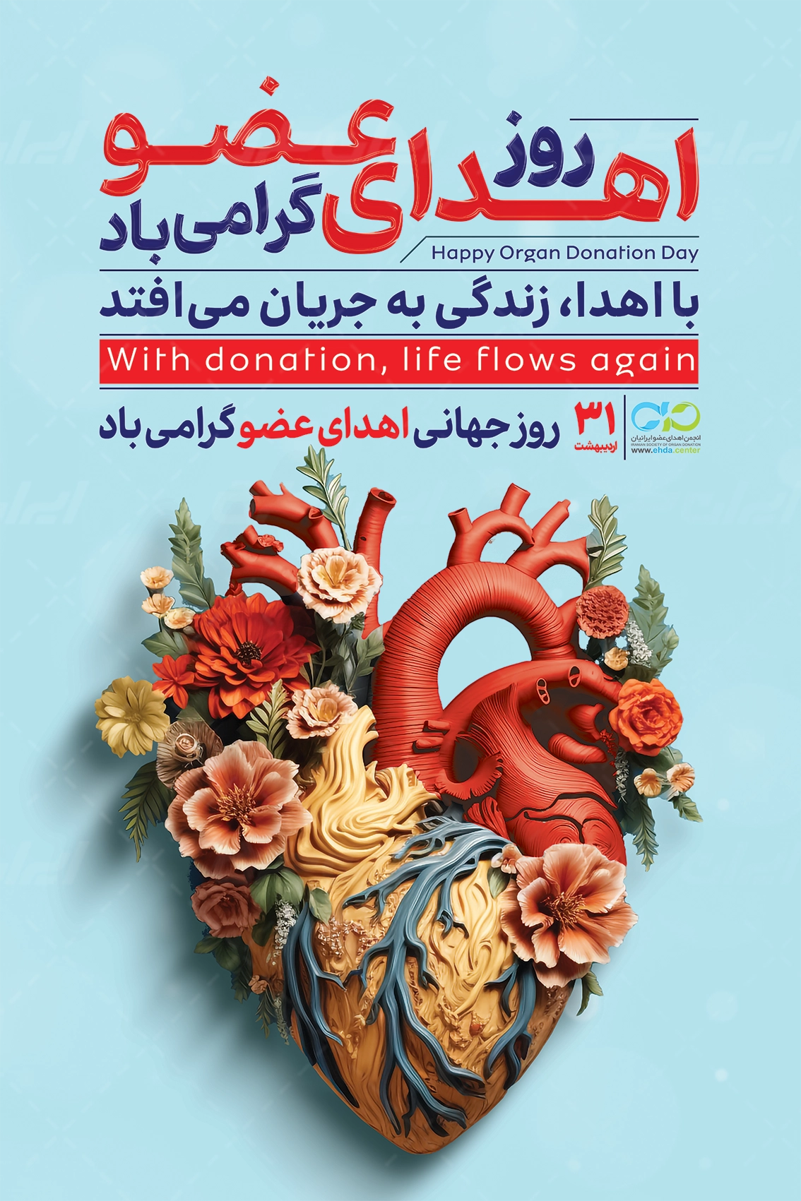 تصویر قلب و متن گرامیداشت روز اهدای عضو می باشد که توسط تیم ایران طرح طراحی شده است.