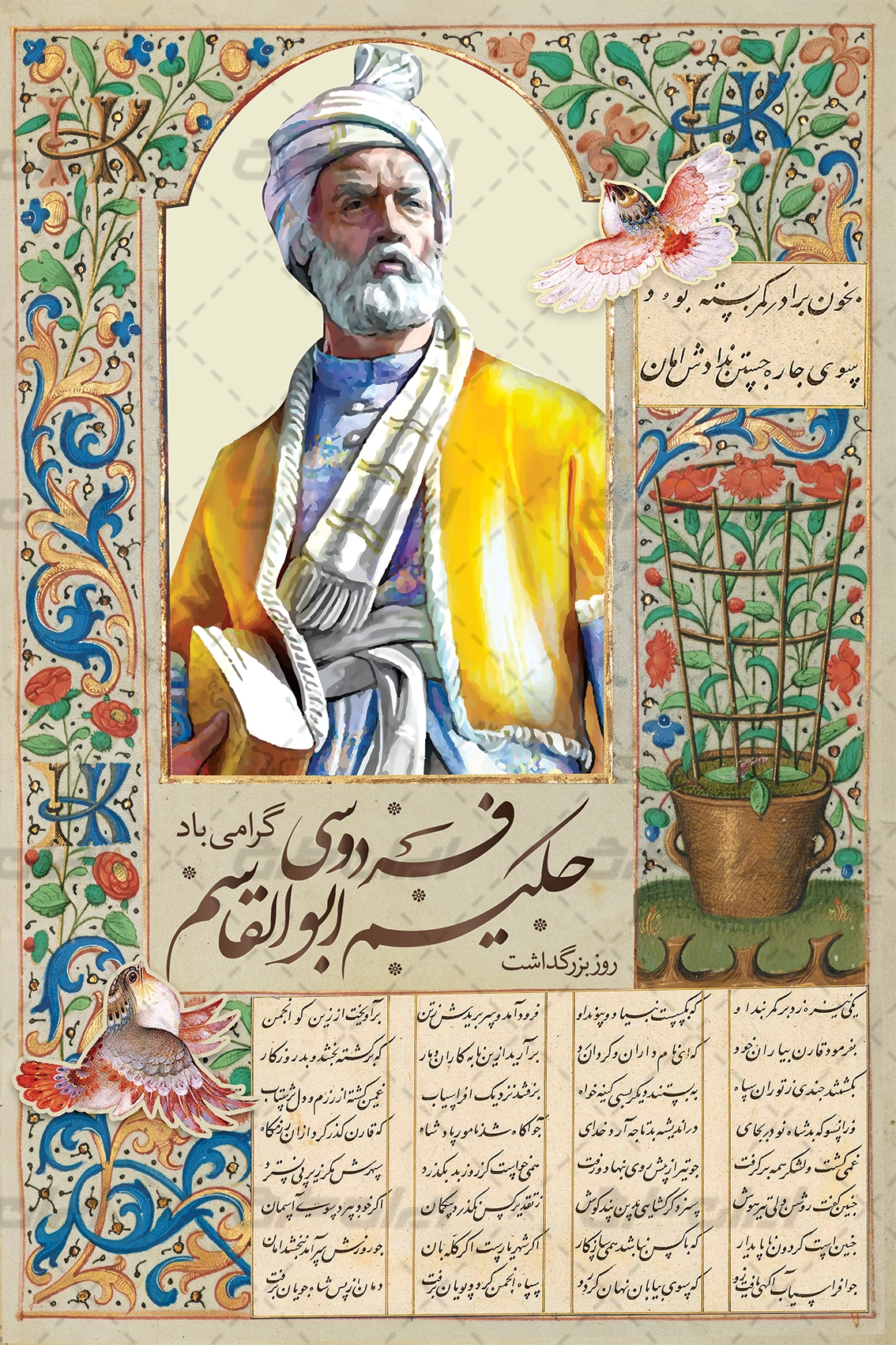 طرح بنر روز بزرگداشت فروسی شامل: