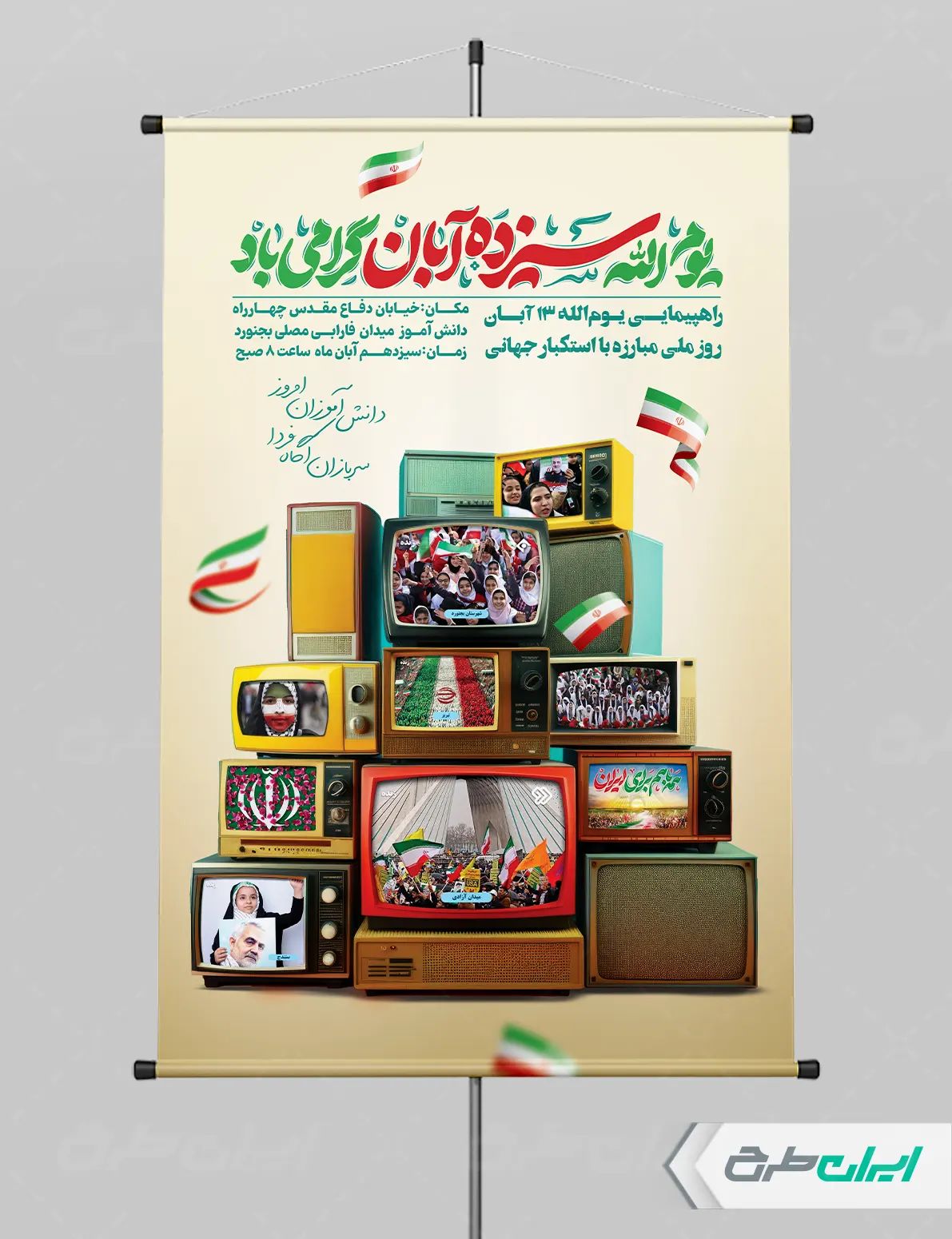 طرح بنر 13 آبان، توسط تیم با تجربه ایران طرح جهت استفاده کاربران سایت طراحی و به صورت لایه باز در دسترس کاربران قرار گرفته است.