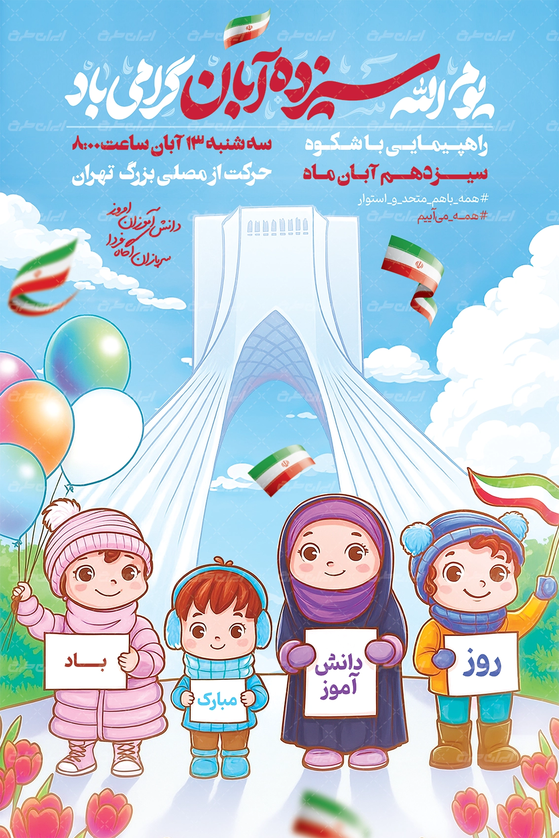 طرح بنر 13 آبان، توسط تیم با تجربه ایران طرح جهت استفاده کاربران سایت طراحی و به صورت لایه باز در دسترس کاربران قرار گرفته است.
