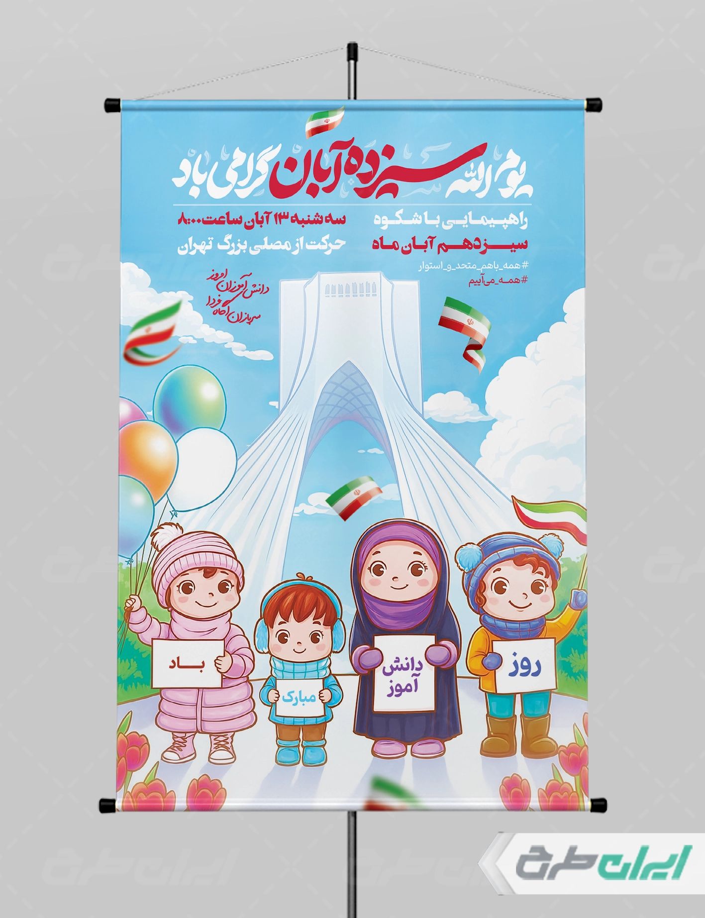 مشخصات فنی طرح بنر لایه باز 13 آبان